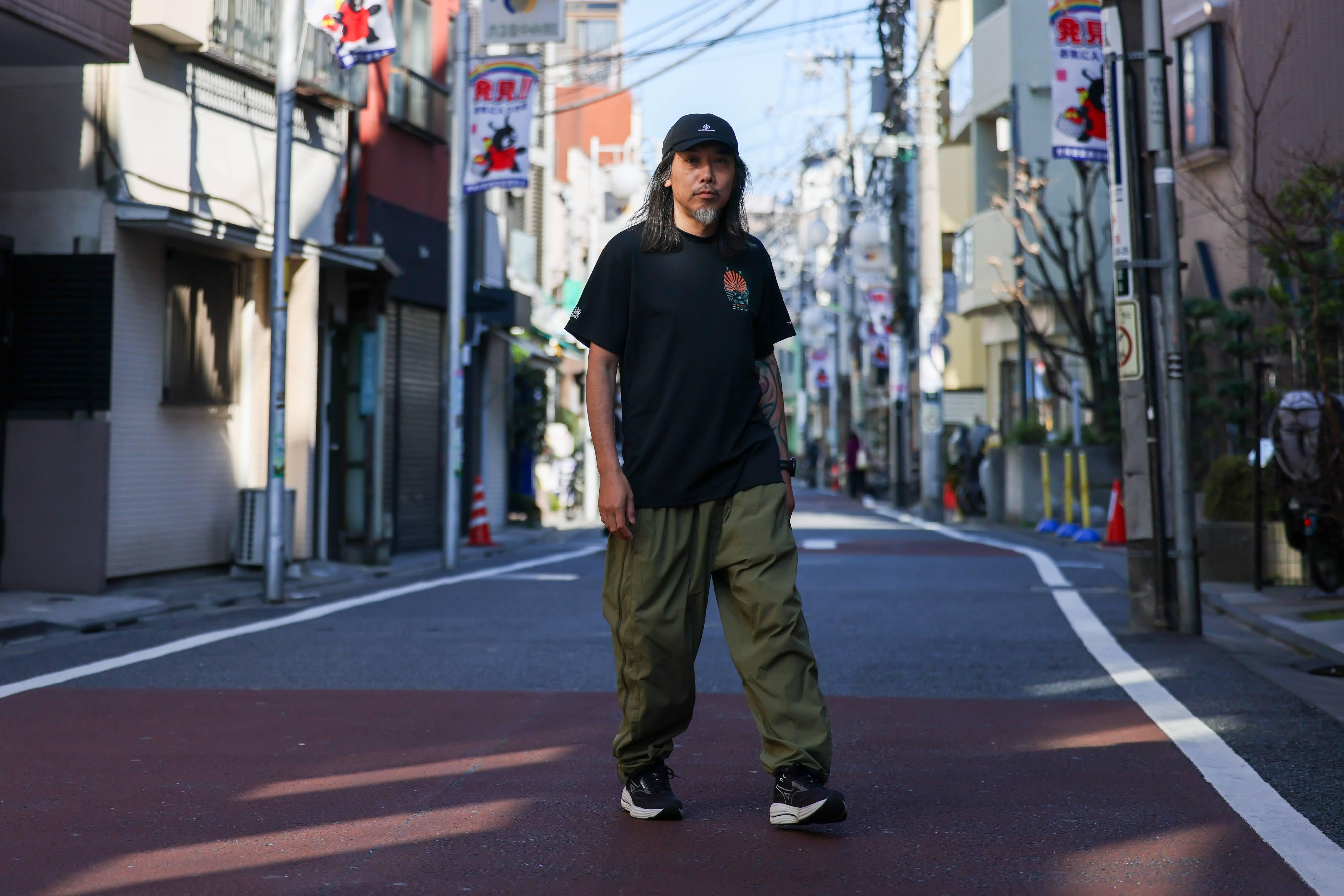 着用写真はアクザワさん自らサンプルを着て街中で撮影いたしました。